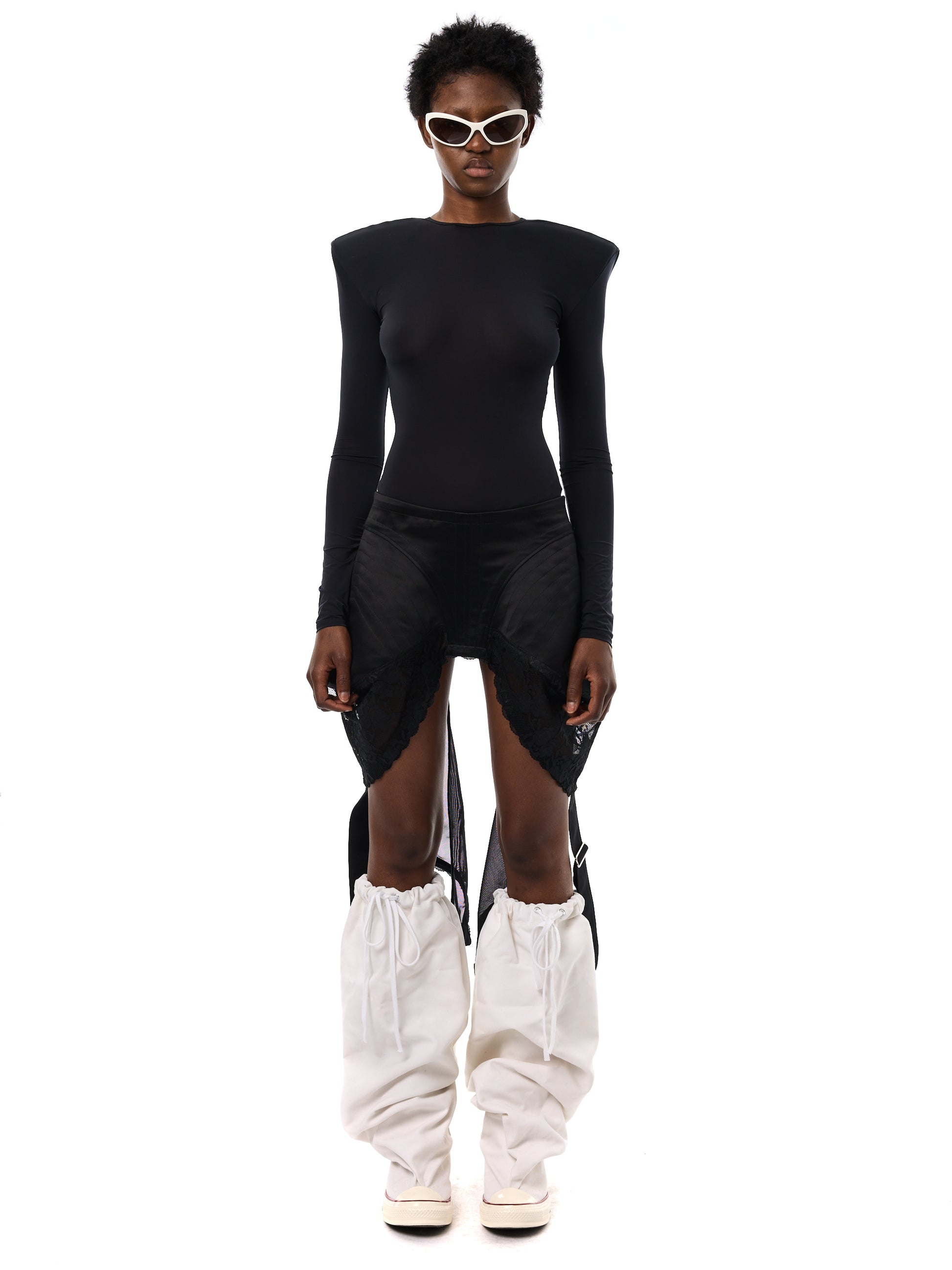 Vaquera X Converse. Waxed canvas slouchy knee high sneakers with internal wedge heel. Top lace and elastic webbing to cinch to leg. All star logo patch at ankles. White topstitching. Rubber outsole.
